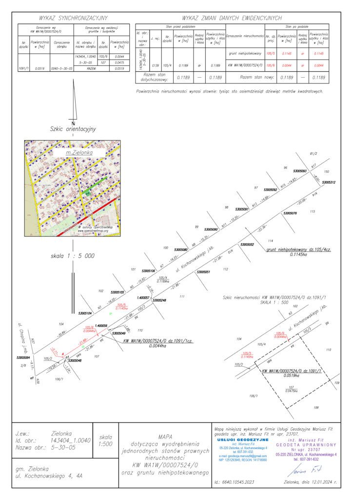 Po zatwierdzeniu operatu przez urząd (jeśli wymagane), gotowe dokumenty przekazuję w umówionej formie – papierowej lub elektronicznej. Otrzymujesz komplet materiałów potrzebnych do dalszych działań: budowy, podziału, uzyskania decyzji.