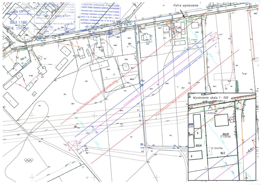 Mapy te pozwalają jednoznacznie określić przebieg, wymiary i lokalizację pasa służebnego względem granic działek oraz innych elementów zagospodarowania terenu.