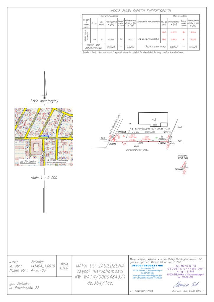 Po zatwierdzeniu operatu przez urząd (jeśli wymagane), gotowe dokumenty przekazuję w umówionej formie – papierowej lub elektronicznej. Otrzymujesz komplet materiałów potrzebnych do dalszych działań: budowy, podziału, uzyskania decyzji.