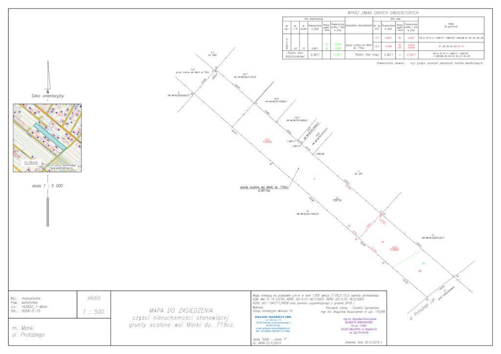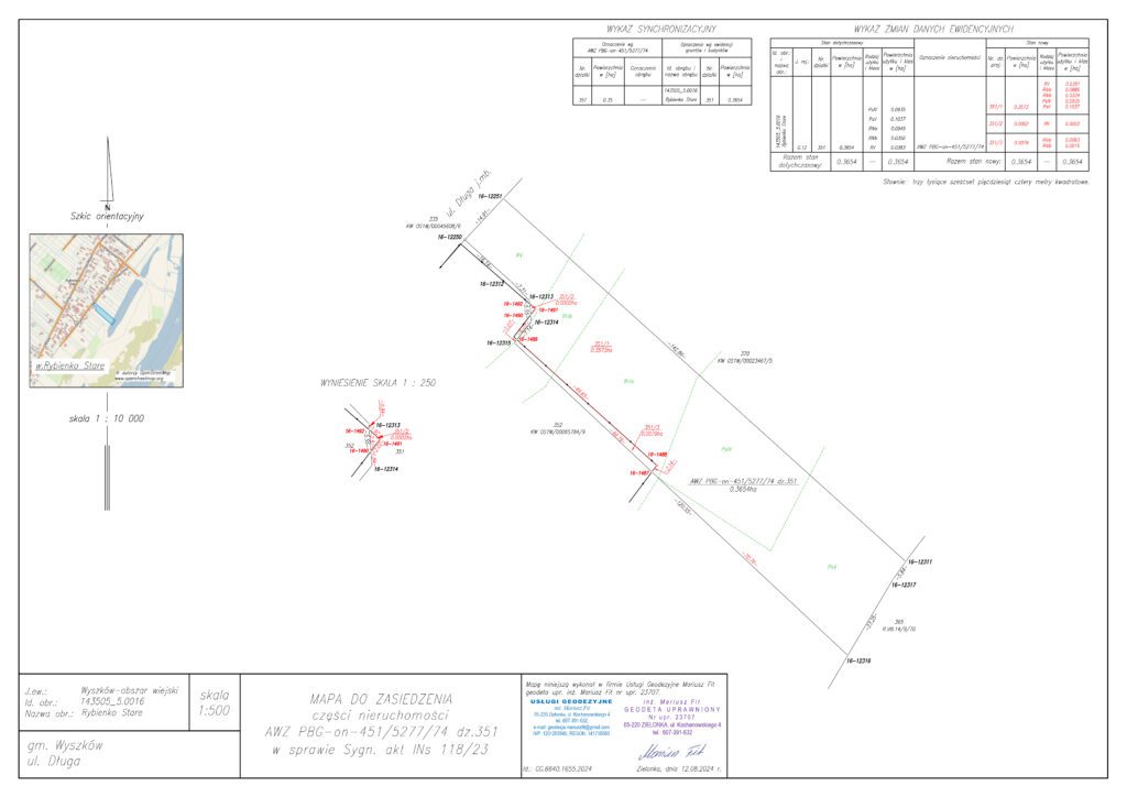 Tego typu opracowanie pozwala jednoznacznie określić zakres faktycznego posiadania gruntu, jego lokalizację, powierzchnię oraz relację wobec granic ewidencyjnych.